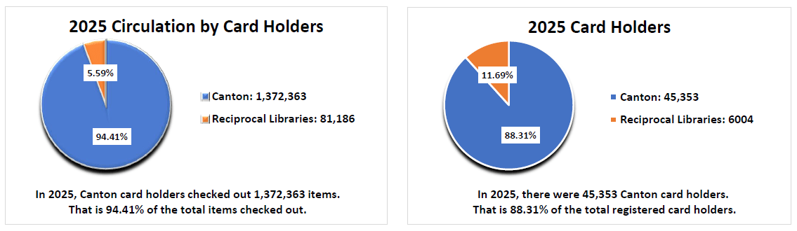 There were 51,357 total library card holders. Of these, 88.31% were Canton Public Library Card holders.