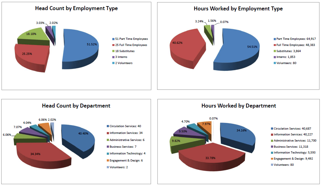 Employees, including part time, full time, substitutes, and interns, worked a total of 119,017 hours.